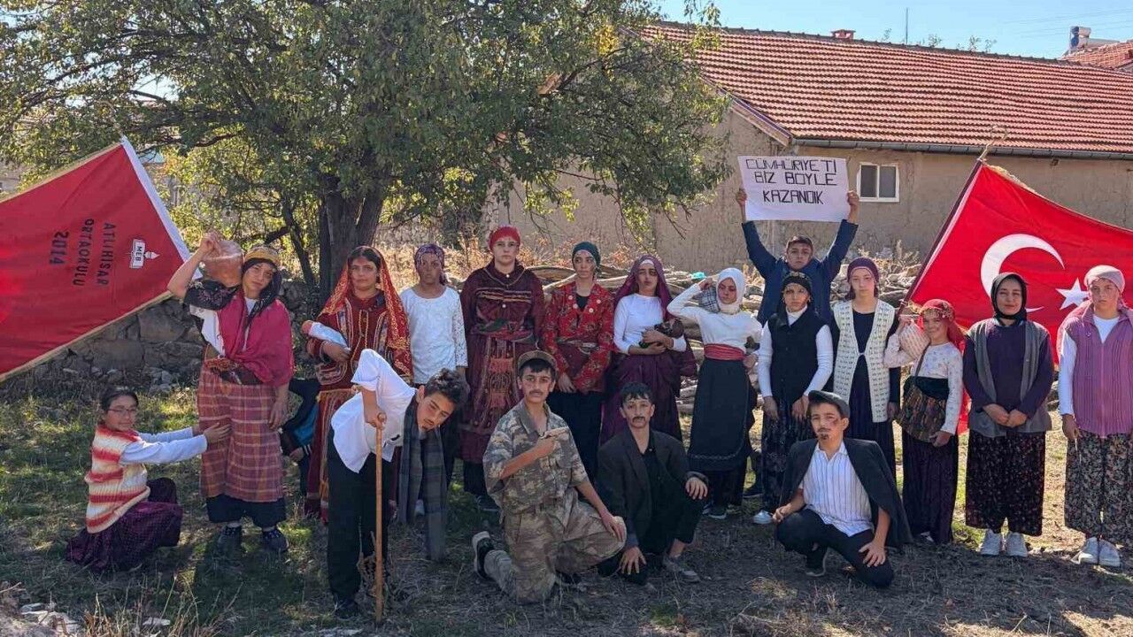 Afyonkarahisar’ın Şuhut ilçesine bağlı Atlıhisar Ortaokulu öğrencileri, 29 Ekim Cumhuriyet Bayramı’nın 102.’nci yılını özel bir etkinlikle kutladı. "Geçmişten Günümüze Cumhuriyet" temasıyla düzenlenen etkinlikte öğrenciler, Cumhuriyet’in ilk yıllarına ait fotoğrafları giyindikleri kıyafetlerle birebir canlandırarak tarihî bir yolculuğa çıktılar.