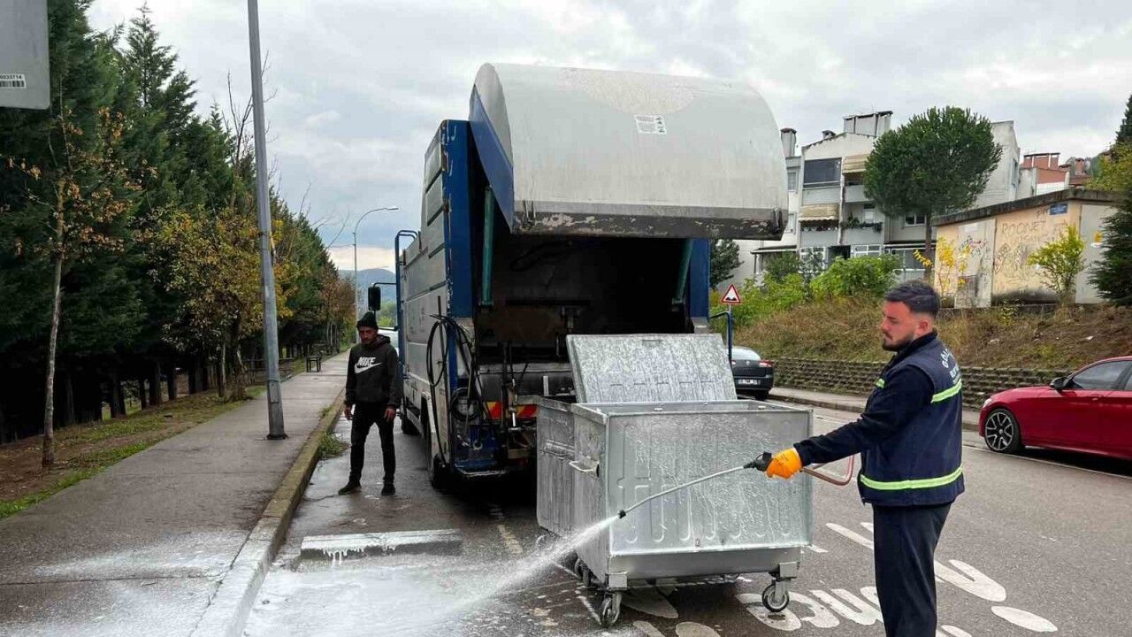 Gölcük’te ilçe genelinde bulunan çöp konteynerler, ekipler tarafından düzenli olarak yıkanarak dezenfekte ediliyor.
