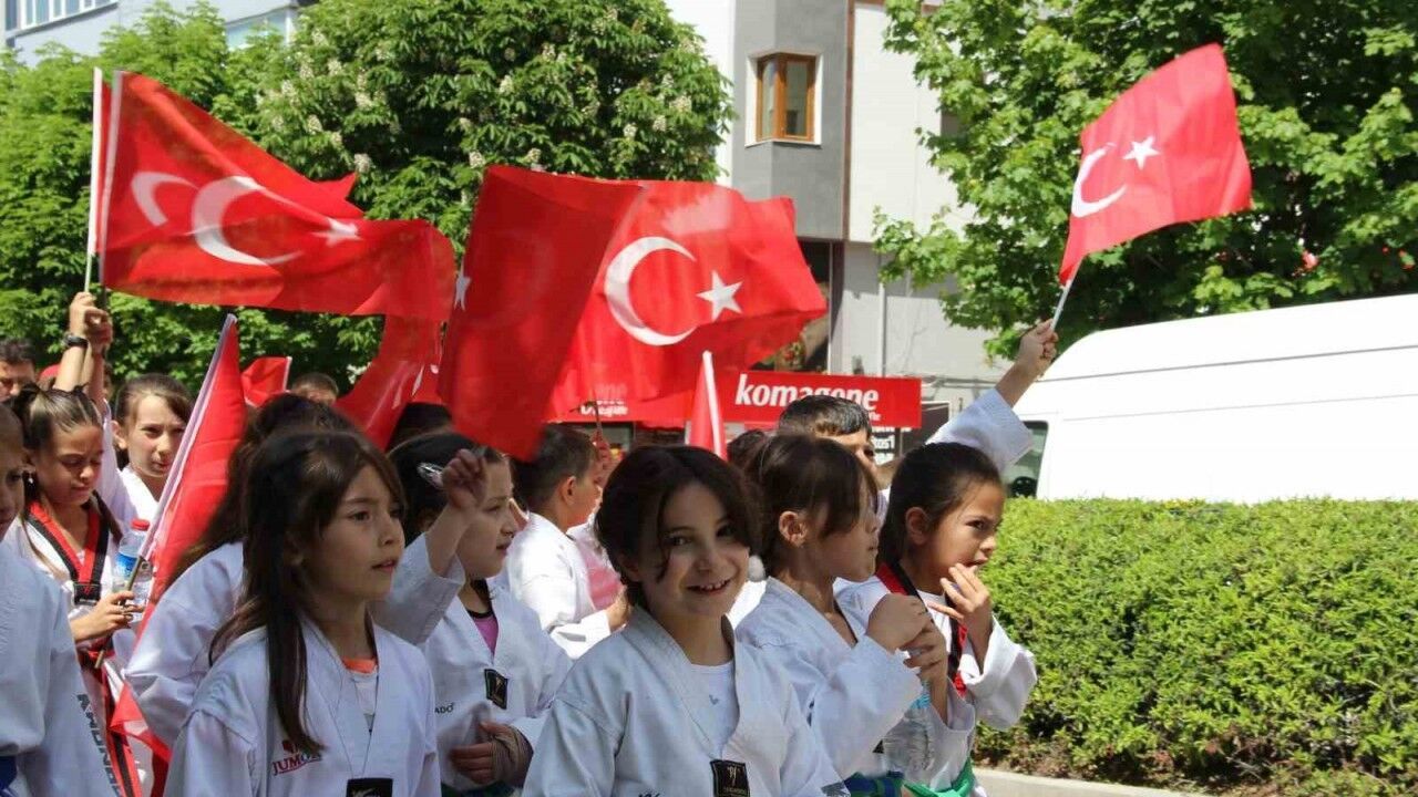Çorum’da Aile Haftası ve Gençlik Haftası çerçevesinde düzenlenen kortej yürüyüşüne katılan yüzlerce vatandaş ve genç, ellerindeki bayrak, pankart ve dövizlerle yürüdü.