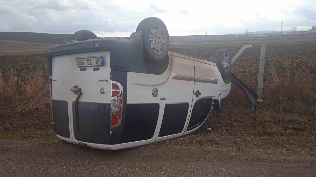 Çorum’un Alaca ilçesinde, sürücüsünün kontrolünden çıkan hafif ticari araç ters döndü. Kazada sürücü yara almadan kurtuldu.
