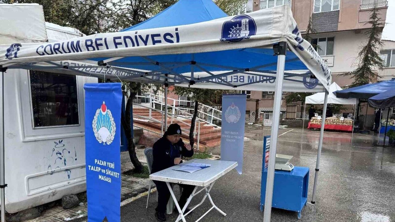 Çorum’da pazar ve hal yerlerinde yapılan teftişten sonra vatandaşlar için talep ve şikayetlerini iletebileceği anket masası kuruldu.