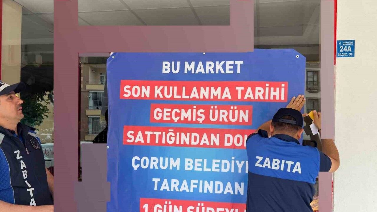 Çorum Belediyesi tarafından yapılan denetimde son tüketim tarihi geçmiş ürün bulunduran zincir market şubesine 1 gün kapatma cezası verdi.