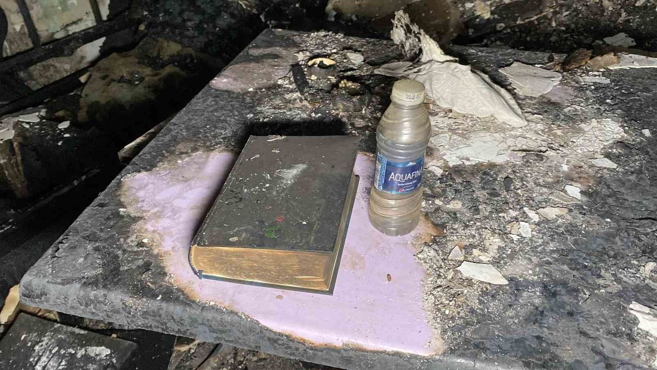 Çorum'da çıkan yangında kullanılamaz hale gelen gecekonduda masa üzerindeki Kur'an-ı Kerim meali ile plastik şişedeki zemzem suyu zarar görmedi. Yangında 40 yıllık birikimini kaybeden vatandaş, 'O kadar ateşe rağmen masanın üzerindeki Kur'an-ı Kerim mealinin bulunduğu bölüm yanmamış' dedi.