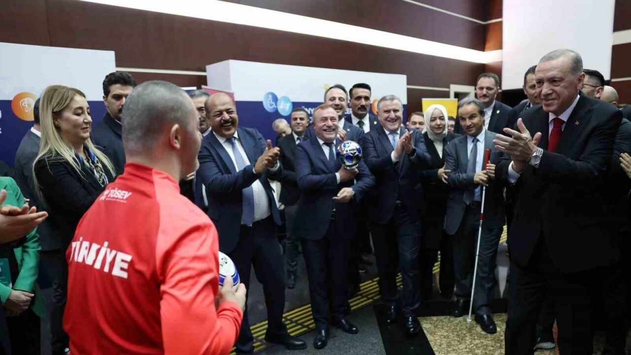 Cumhurbaşkanı Recep Tayyip Erdoğan, Avrupa Şampiyonu olan Down Sendromlu Futsal Millî Takımı oyuncuları ile bir araya geldi.