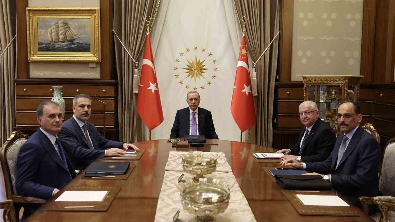 Toplantıya Cumhurbaşkanı Erdoğan’ın yanı sıra Dışişleri Bakanı Hakan Fidan, Milli Savunma Bakanı Yaşar Güler, Milli İstihbarat Teşkilatı Başkanı İbrahim Kalın ve AK Parti Sözcüsü Ömer Çelik katıldı.