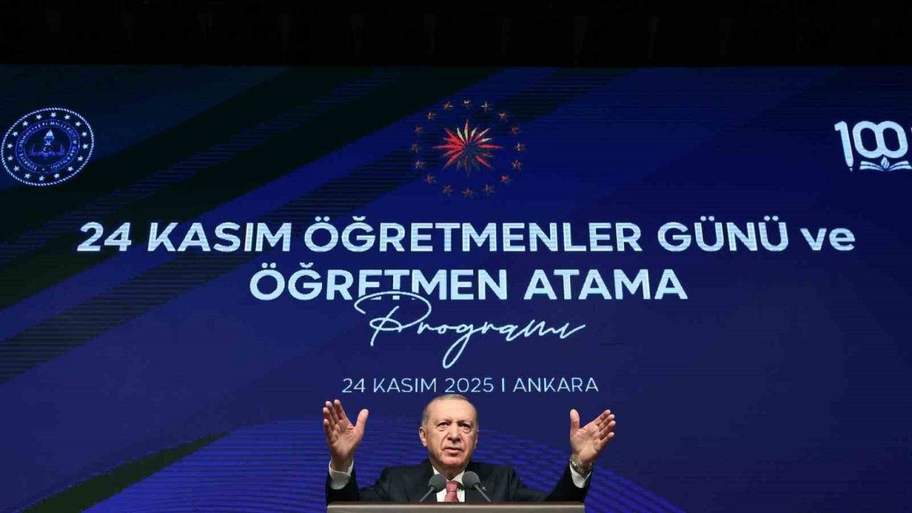 Toplumda ve herkesin hayatında özel bir konuma sahip olan öğretmenlere haklarını teslim etmenin asli vazife olduğunu belirten Erdoğan, "Son 23 yılda hep böyle bir çabanın içinde olduk. Ülkemizin büyümesine, Türkiye ekonomisinin imkanlarının genişlemesine paralel olarak bunu en önce öğretmenlerimize, en önce eğitime yansıttık. Eğitimin niteliğini artırmak, eğitimi yaygınlaştırmak eğitimin önündeki engelleri ve yasakları kaldırmak, öğrencilerimiz arasında fırsat eşitliğini sağlamak için ilk günden beri çalışıyoruz. 2002’de MEB merkezi yönetim bütçesi içinde 4’üncü sıradaydı. 2003’ten itibaren eğitime birinci sırayı tahsis ettik. 2026 bütçesinde de bu önceliği koruduk. MEB’e 2026’da 1 trilyon 944 milyar lira kaynak ayırdık. Gerekli desteği en üst seviyede ilme, eğitim-öğretime ayırmak durumundayız. Bu dönemde derslik sayımız 343 bindi, bugün 616 bine yükseldi. Özel okullar dahil edildiğinde bu rakam 754 bine yaklaşıyor. Bizden evvel yapılan derslik sayısının 2 katını biz sadece 23 senede ülkemize kazandırmanın kıvancını yaşadık. Okullarımızda görev yapan öğretmen sayısında da ciddi artışlar oldu. 2002’den bu yana 821 bin 360 öğretmenin atamasını yaptık. Şu an resmi eğitim kurumlarında çalışan öğretmen sayımız 1 milyon 34 bini aşmıştır. Aktif görevdeki her 10 öğretmenden 8’i bizim dönemimizde atandı. Öğretmen olmazsa öğrenciyi kim yetiştirecek? Buna gereken önemi vermemiz gerekiyordu. İşte bunu biz verdik. Bu büyük dönüşüm sınıfların içinde de somut şekilde hissediliyor" diye konuştu.