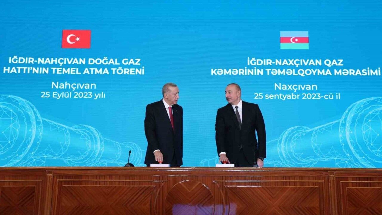 Cumhurbaşkanı Recep Tayyip Erdoğan, Nahçıvan’da Iğdır-Nahçıvan doğalgaz boru hattı temel atma töreninin ardından Azerbaycan Cumhurbaşkanı İlham Aliyev ile ortak basın toplantısı düzenledi. Erdoğan, Türkiye’yi Türk dünyasına bağlayan Nahçıvan’da olmaktan büyük memnuniyet duyduğunu belirterek, “2008 yılındaki son ziyaretimden bu yana Nahçıvan’ın kaydettiği gelişmeyi gururla müşahede ettim. Nahcivan’ın bugün geldiği noktada büyük payı olan Azerbaycan’ın umum milli lideri Haydar Aliyev’i doğumunun 100’üncü yılında bir kez daha rahmetle yad ediyorum. Türkiye ve Azerbaycan ilişkileri dünyada eşi benzeri bulunmayan müstesna bir konumdadır. ‘Tek millet iki devlet’ şiarı çerçevesinde ilişkilerimizi ve işbirliğimizi her alanda güçlendirmek üzere çalışmalarımızı sürdürüyoruz” dedi.