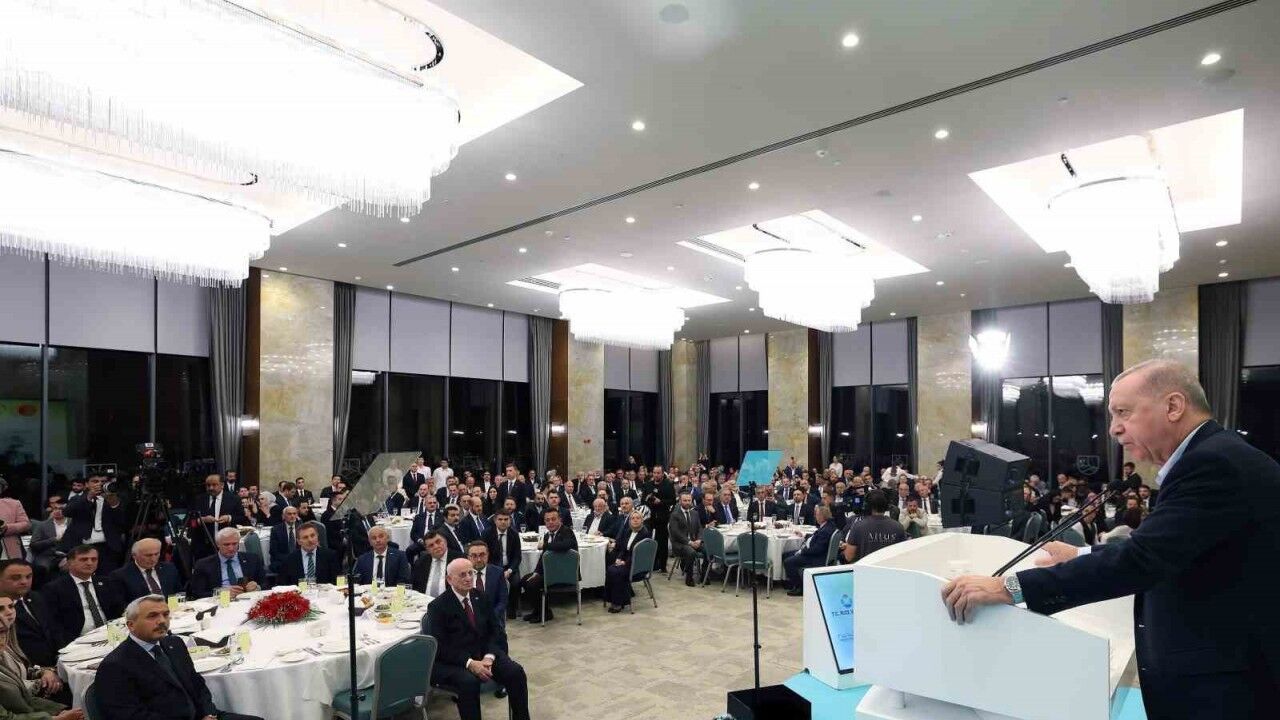 Cumhurbaşkanı Recep Tayyip Erdoğan, Türkiye’nin son 23 yılda elde ettiği birçok kazanımın arkasında özel sektör kamu dayanışmasının çok büyük rolü olduğunu vurgulayarak, "Çalışkan vizyon sahibi siz iş insanlarımıza her alanda öncülük ederek sizlerin yolunu açtık engelleri ortadan kaldırdık sizlere destek olduk. Sizler de önünüze çıkan fırsatları en iyi şekilde değerlendirerek Türk ekonomisine kan verdiniz, can verdiniz. Ağızlarını açtıklarında yandık bittik diyerek millete karamsarlık zerk eden felaket tellallarına değil bu ülkeye inandınız bu devlete güvendiniz. Aramızdaki işte bu dayanışma sayesinde Türkiye’ye nice başarıları birlikte yaşattık. Mesela 36 milyar dolardan aldığımız ihracatı 270 milyar dolar sınırına sizlerle birlikte getirdik. Mesela yıllık 13,2 milyon turist ağırlayan ülkemizi sadece 2025’in ilk altı ayında 26 milyon 390 bin ziyaretçi ağırlayan ülke olarak dünyada dördüncü sıraya sizlerle beraber yükselttik. Savunma sanayinde yüzde 80 olan dış bağımlılığımızı tersine çevirdik. Kendi gemi filomuz kırarak yeraltı kaynaklarımızı keşfe başladık. İnsansız hava araçlarında dünyada ilk üç ülkeden bir olduk. Benzer oranları diğer pek çok alanda görmek mümkündür. Bunun bozulmasına fırsat vermeyeceğiz. Bir olacağız birlikte olacağız ve hep beraber inşallah Türkiye olacağız. Türkiye’yi sadece ekonomide değil diğer başlıklarda da bütün hedefler ile inşallah buluşturacağız. Her zaman söylüyorum ana muhalefetin yaptığı gibi laf cambazlığıyla, polemikle kavgayla bu işler yürütülmez. Ülke yönetmek çok ciddi bir iştir. Ciddiyetle yerine getirilmesi gereken ağır bir sorumluluktur. Biz bu sorumluluğu tam 23 yıldır aziz milletimizin de desteği ve duasıyla hakkıyla taşıyoruz. Hem ekonomide hem diplomaside hem de diğer alanlarda meselenin lafını değil icraatını yapıyoruz. Dün ne söylediysek arkasında durduk bugünde ne söylüyorsak yarın dimdik arkasında duracağız. Şimdiye kadar ne iş dünyamıza ne de aziz milletimize hayal kırıklığı yaşatmadık. İnşallah bundan sonra da yaşatmayacağız" ifadelerini kullandı.