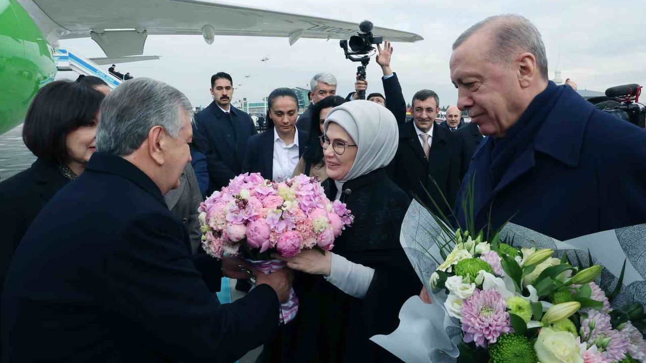 Cumhurbaşkanı Recep Tayyip Erdoğan, Özbekistan Cumhurbaşkanı Şevket Mirziyoyev'i resmi törenle karşıladı.