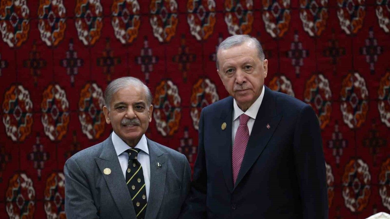 Cumhurbaşkanı Recep Tayyip Erdoğan, temaslarda bulunmak üzere geldiği Türkmenistan’da Pakistan Başbakanı Şahbaz Şerif ile bir araya geldi.