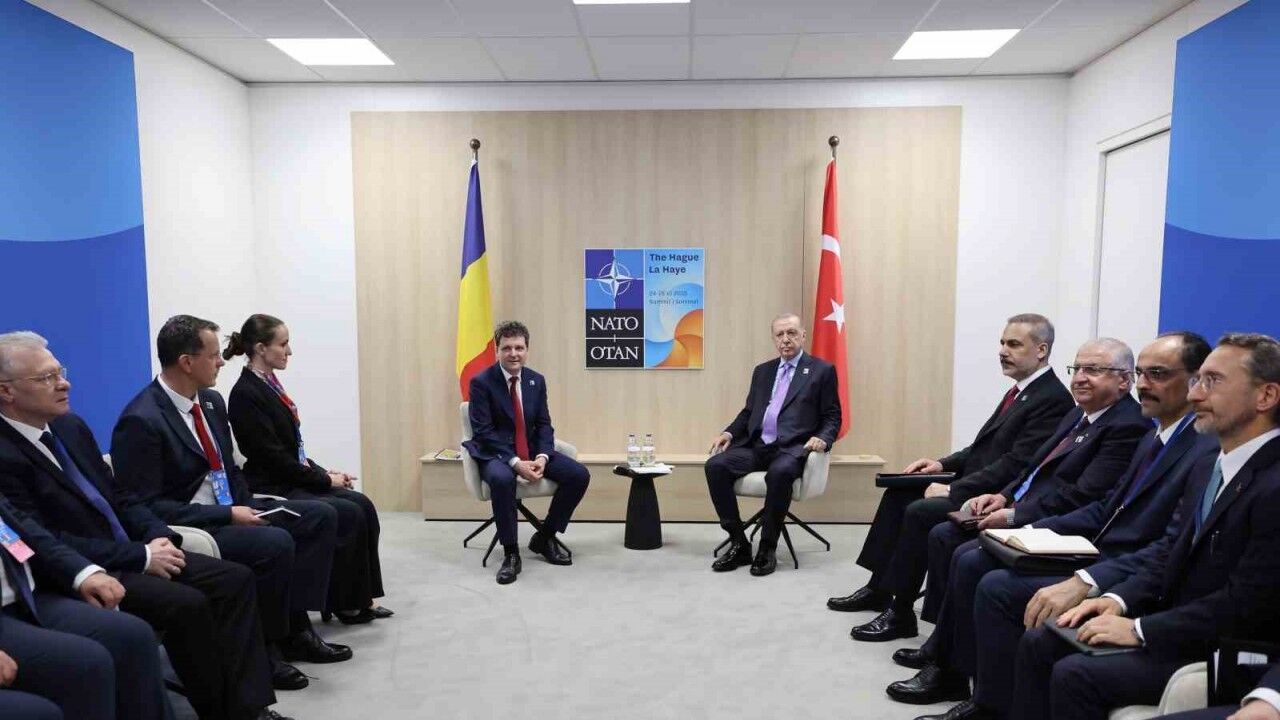 Cumhurbaşkanı Recep Tayyip Erdoğan, Hollanda’nın Lahey kentinde düzenlenen NATO Zirvesi kapsamında ikili temaslarını sürdürüyor. Cumhurbaşkanı Erdoğan, zirve marjında Romanya Cumhurbaşkanı Nicusor Dan ile görüşme gerçekleştirdi. Görüşmede Cumhurbaşkanı Erdoğan’a Dışişleri Bakanı Hakan Fidan, Milli Savunma Bakanı Yaşar Güler, Milli İstihbarat Teşkilatı (MİT) Başkanı İbrahim Kalın, Cumhurbaşkanlığı İletişim Başkanı Fahrettin Altun, Cumhurbaşkanı Dış Politika ve Güvenlik Başdanışmanı Akif Çağatay Kılıç ve AK Parti Genel Başkan Yardımcısı Halit Yerebakan eşlik etti.