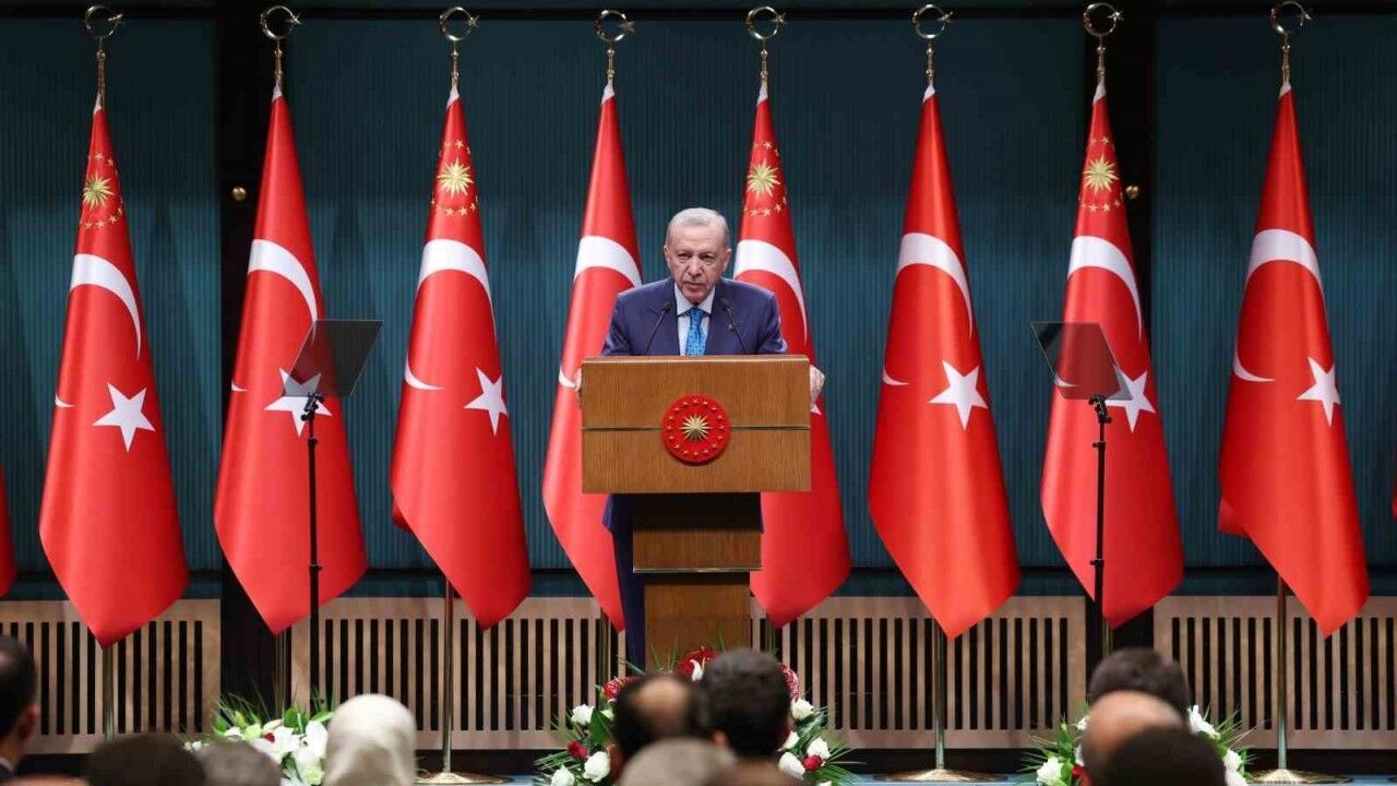 Cumhurbaşkanı Recep Tayyip Erdoğan, Cumhurbaşkanlığı Külliyesi’nde gerçekleşen Kabine toplantısının ardından millete sesleniş konuşmasını gerçekleştirdi. Bölgesel ve küresel gelişmeler bağlamında tarihi sıfatın tam olarak ete kemiğe büründüğü bir dönemden geçildiğini belirten Cumhurbaşkanı Erdoğan, dünyaya ve insanlık tarihine yön veren bu hadiselerin hemen hemen tamamının Türkiye’nin merkezinde yer aldığı coğrafyada cereyan ettiğine dikkat çekti. Cumhurbaşkanı Erdoğan, bu hadiselerin doğrudan etkilediği ülkelerin en başında da hiç tartışmasız Türkiye’nin geldiğini belirterek, "Temkin, tedbir ve teyakkuzu bir an bile elden bırakmanın ağır sonuçlarının olacağının gayet farkındayız. Rehavete kapılma, gardımızı düşürme, hadiseleri seyrine bırakma gibi bir lüksümüzün olmadığını çok net biçimde görüyoruz. Karşımızdaki tabloyu binlerce yıllık birikimin neticesinde tekemmül ve tebellür eden devlet aklının geniş merceğinden bakarak okuyoruz. Bunun için dibini görmediğimiz suya adım atmıyoruz. Bin yıllık mirasın, yüz yıllık ufkun rehberliğinde bütün süreçleri titizlikle yönetiyoruz. Hamaset ve nostaljiyle değil, stratejik akıl ve sabırla hareket ediyoruz. Allah’ın yardımı, aziz milletimizin desteği, mazlum ve mağdurların duasıyla hedeflerimize doğru emin adımlarla yürüyoruz. Elbette daha yapacak çok işimiz, gidecek daha çok yolumuz var. Ama biz kararlıyız, azimliyiz, hedefe varmak için sabırsızlaşan ok misali büyük ve güçlü Türkiye idealine kenetlenmiş durumdayız" açıklamasını yaptı.