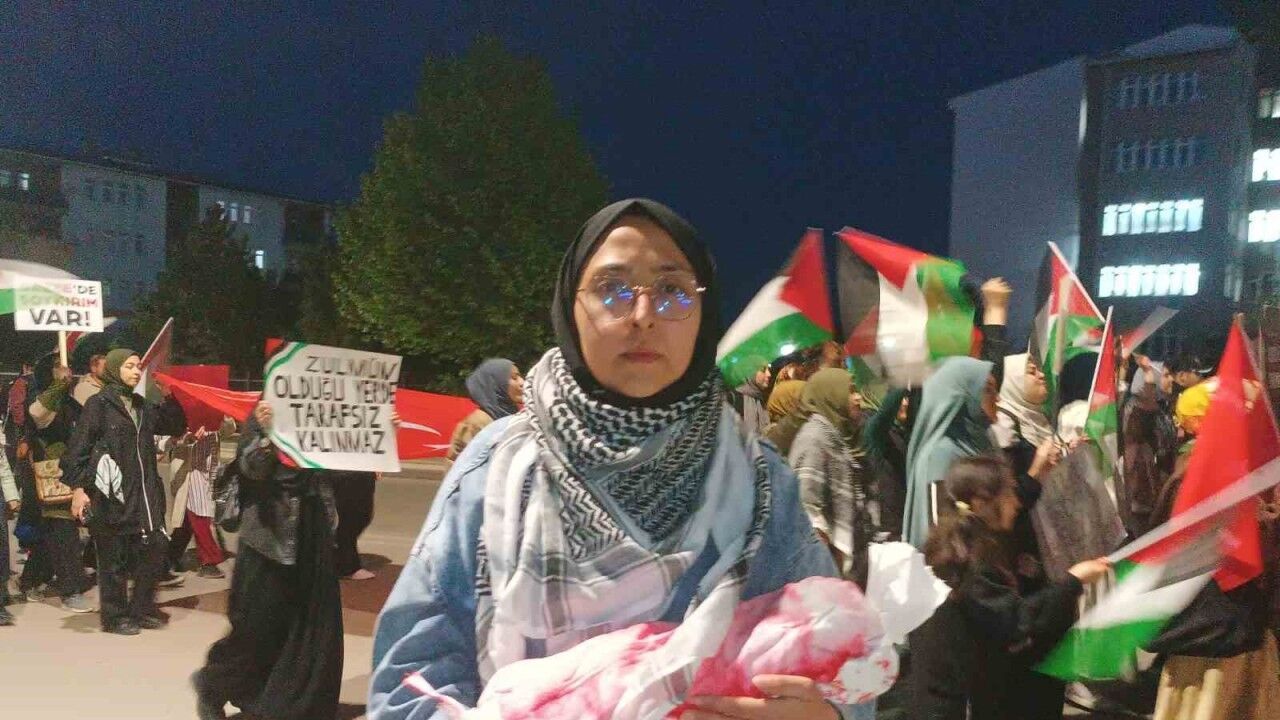 Sivas’ta Cumhuriyet Üniversitesi öğrencileri, İsrail’in Gazze’de devam ettirdiği katliam ve soykırımı protesto etmek amacıyla yürüyüş gerçekleştirdi. İsrail’in katliamlarında ölen bebeklere dikkat çekmek için öğrenciler ellerinde kanlı oyuncak bebeklerle yürüdü.