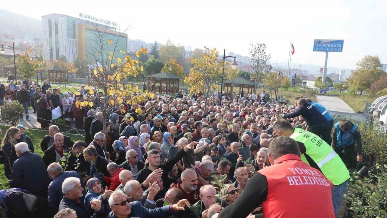 Belediye tarafından ilçe halkına Hürriyet Parkı’nda 5 bin Yomra elması, 4 bin de Yomra armudu fidanı dağıtılırken, törende konuşan Yomra Belediye Başkanı Mustafa Bıyık, Yomra Elması’nın geleceğine yönelik kararlı çalışmaların devam ettiğini vurguladı. Başkan Bıyık, "Yomra Elması’nın her geçen gün daha da kalıcı olması ve ilçemizin önemli bir markası hâline gelmesi için çalışmalarımızı sürdürüyoruz. Farklı sektörlerde, farklı lezzetlerle Yomra Elmamızı buluşturmaya devam edeceğiz. Böylelikle markalaşma sürecine de önemli katkı sağlamış olacağız. Bu süreçte ilgi gösteren tüm hemşehrilerimize teşekkür ediyorum. Önümüzdeki yıl ilçemizde bir satış ofisi kuracağız. Bu satış ofisinde hem fidanlara hem de elma ve armuttan üretilen ürünlerimize kolayca ulaşılabilecek. Böylelikle hem ürünlerimizin hem de fidelerimizin erişilebilirliğini artırarak üreticilerimize ve vatandaşlarımıza önemli bir kolaylık sağlamış olacağız" dedi.