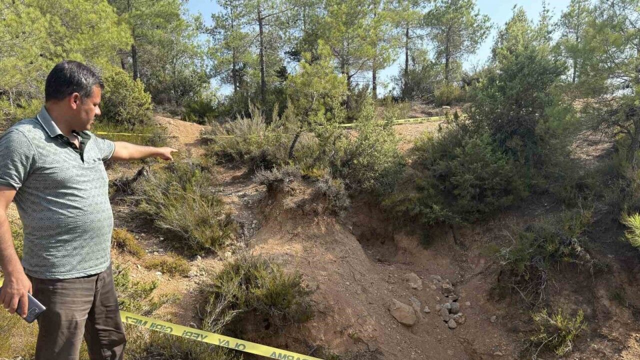 Şüphelilerin yolculuk için anlaştıkları Binalı Aslan’ı, Gölbaşı yakınlarında öldürdükten sonra gömdükleri Mersin’in Tarsus ilçesinde ormanlık olan Kaburgediği Mahallesi Akarca mevkiinde gömdükleri yer görüntülendi.