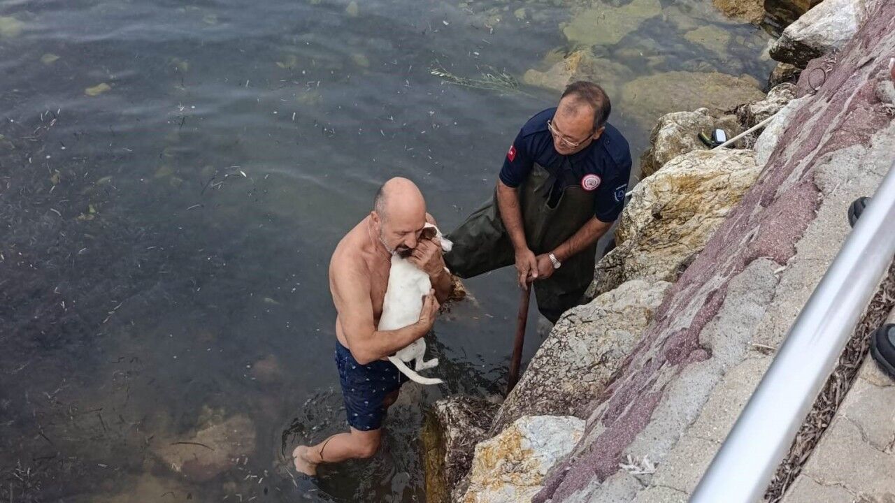 Balıkesir’in Burhaniye ilçesinde, deniz kenarındaki kayalıklara sıkışan bir köpek için itfaiye ekipleri ve vatandaşlar seferber oldu. Olay, Pelitköy Mahallesi İçmeler Kordon Caddesi sahilinde meydana geldi.