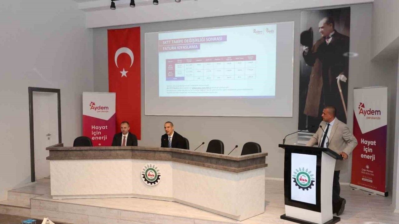 Enerji sektöründeki güncel gelişmelerin ve iş dünyasına yönelik çözüm önerilerinin ele alındığı seminere; Aydem Perakende Satış Direktörü Sarper Saraçoğlu, Büyük Müşteriler Satış Müdürü Ayhan Işık, Kurumsal Müşteriler Satış Müdürü İlyas Kahraman, Pazarlama ve Kurumsal İletişim Müdürü Ceyda Yalçınkaya’nın yanı sıra, bölgede yer alan firmaların temsilcileri ve sanayiciler katıldı.