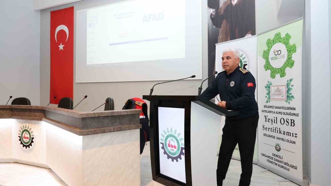 Denizli Valiliği, Denizli Büyükşehir Belediyesi, Denizli Organize Sanayi Bölgesi Müdürlüğü ve AFAD iş birliğinde düzenlenen programa; Denizli Büyükşehir Belediyesi İtfaiye Dairesi Başkanı Murat Başlı, Denizli OSB İtfaiye Müdürü İsa Bay, Arama Kurtarma Şube Müdürü Doğan Tufan, AFAD Şefi Esen Apaki, Sosyal Çalışmacı Derya Bodur, itfaiye personelleri ile firma yetkilileri katılım sağladı. Denizli OSB Konferans Salonu'nda gerçekleştirilen program kapsamında yapılan sunumlarda; sivil savunma planlarının hazırlanması, afetlere karşı farkındalığın artırılması ve sanayi tesislerinde yangın güvenliği konularında bilgilendirme yapıldı. Gerçekleştirilen eğitimlerle, firmaların afet ve acil durumlara yönelik hazırlık düzeylerinin artırılması ve kurumsal farkındalığın geliştirilmesi amaçlandı.