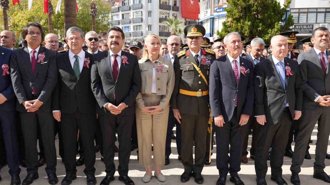 Denizli Valisi Ömer Faruk Coşkun ve Denizli Büyükşehir Belediye Başkanı Bülent Nuri Çavuşoğlu ile 11. Komando Tugay ve Garnizon Komutanı Tuğgeneral Turgut Muhammet Çalışkanlar’ın Atatürk anıtına çelenkleri sunmasıyla başlayan tören, saygı duruşunda bulunulması ve İstiklal Marşının okunmasıyla sona erdi.