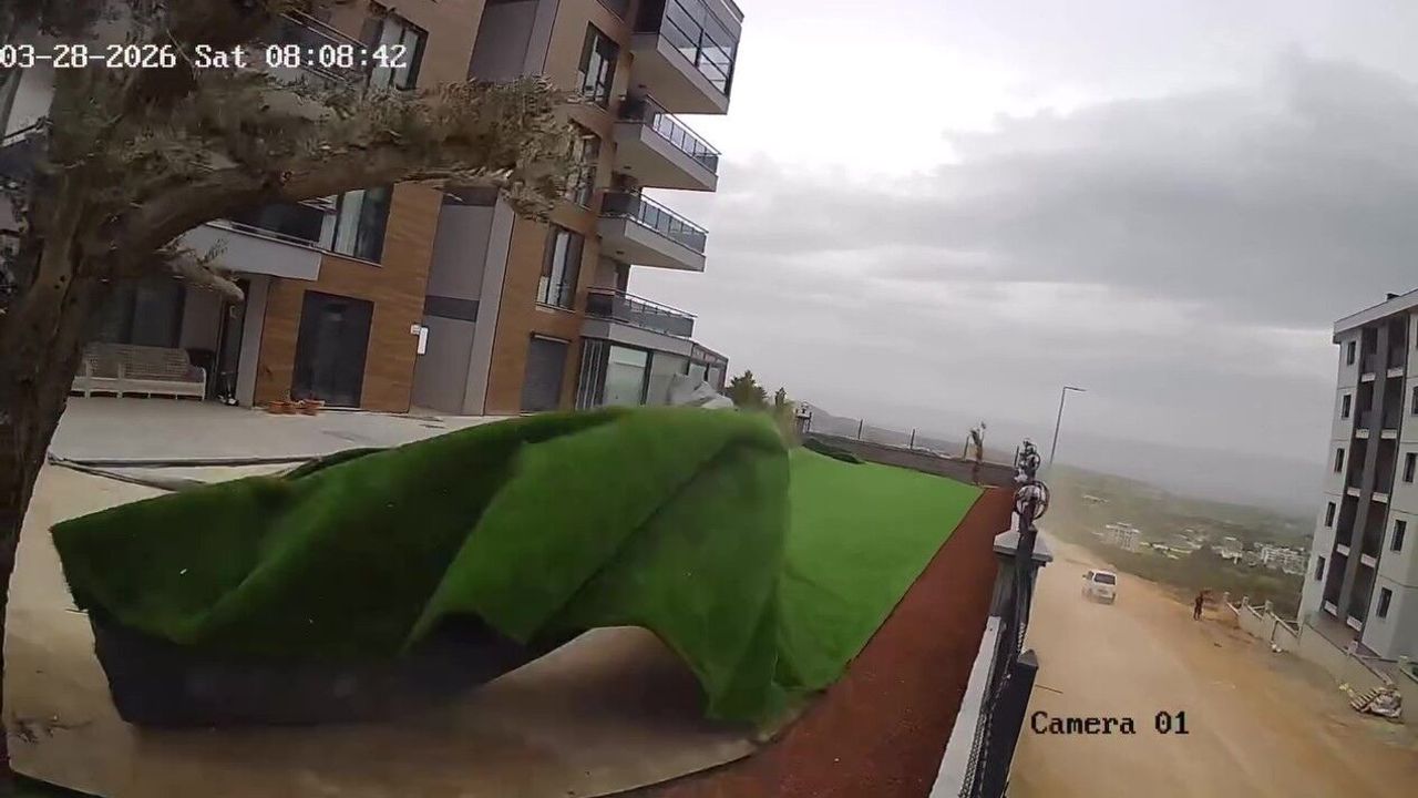 Denizli'de gün boyu etkili olan fırtına, Necati ve Saykolar grubunun bas gitaristi Barış Şanlısoy'un serdiği çim halıyı da uçurdu. Şanlısoy, o anları sosyal medya hesabından 'Kim nazar etti bizim bahçeyi' notuyla paylaştı.