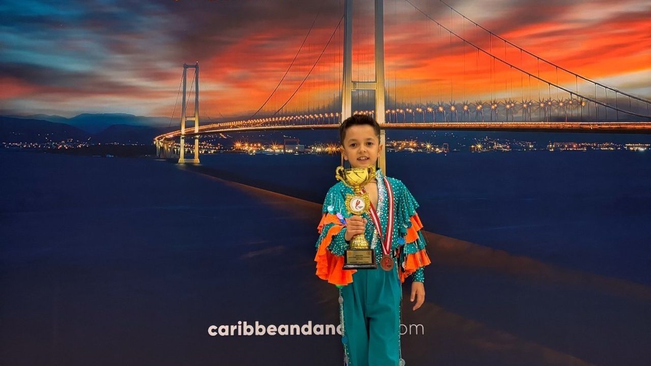 Denizlili 7 yaşındaki dansçı Toprak Çınar Çon, 6-7 Aralık 2025 tarihleri arasında İstanbul’da yapılan ve 11 ülkeden 400 sporcunun katıldığı Karayip Dansları Dünya Şampiyonasında 3. olarak ülkemize bronz madalya getirdi.