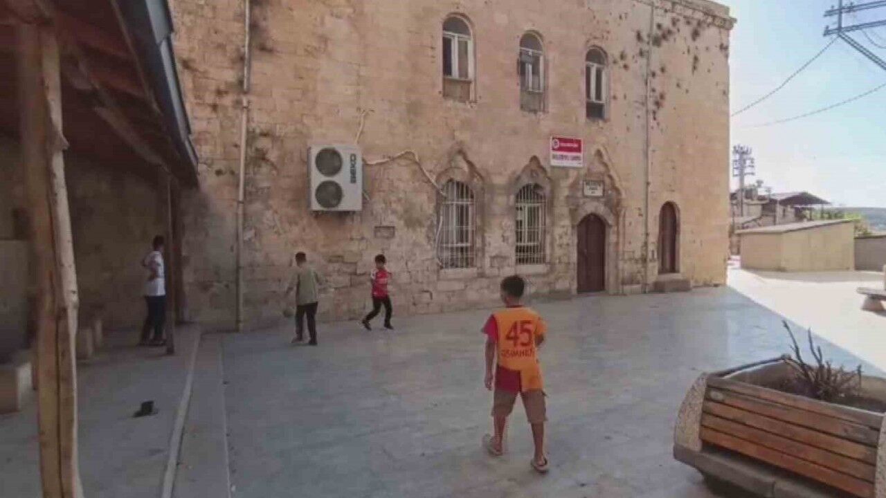 Diyarbakır’ın Silvan ilçesinde bulunan Belediye Camisi, Kahramanmaraş depremlerinde hasar aldığı için ibadete kapalı. İbadete kapalı olan cami çocukların futbol alanı oldu.
