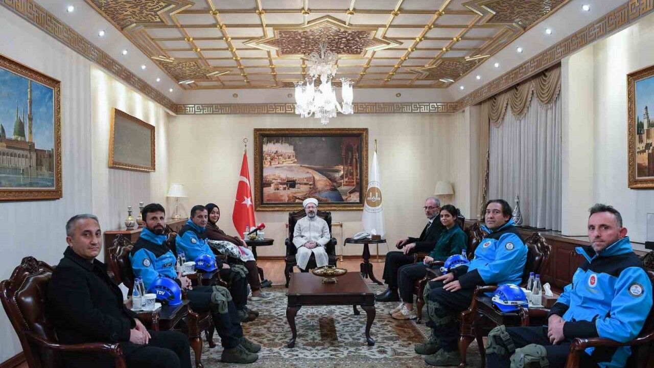 Diyanet İşleri Başkanı Ali Erbaş, 6 Şubat depremlerinde Adıyaman’da enkazdan TDV Ordu Şubesi Arama Kurtarma Ekibi tarafından depremin 7. gününde kurtarılan Elif Kırmızı ile 3. gününde kurtarılan ablası Sena Kırmızı’yı kabul etti.