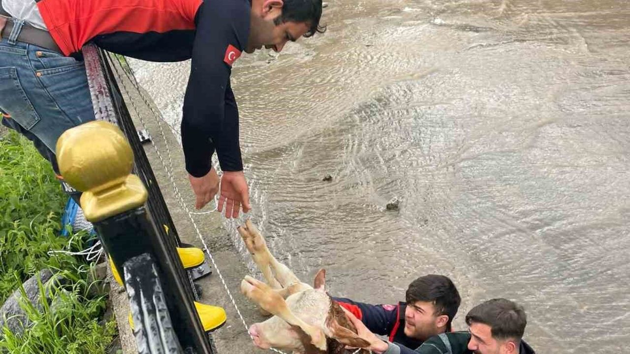 Merada hayvanlarını otlatan Tuncay Yıldız’a ait bir buzağı dereye düştü. Yıldız, kendi imkanlarıyla buzağıyı çıkaramayınca 112 Çağrı Merkezinden yardım istedi. Bölgeye gelen AFAD ekipleri, Yeni Mahalle Kars Köprüsü mevkiine halat bağlayarak hayvanı çıkarttı. Boğulmaktan sonra anda kurtarılan buzağı sahibine teslim edildi.