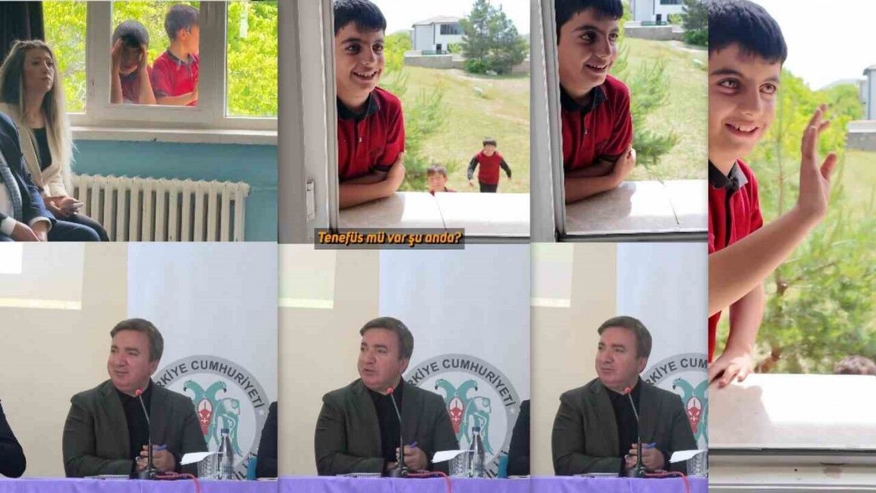 Beden Eğitimi dersinden kaçarak Vali Aydoğdu’nun düzenlediği toplantıyı pencerenin arkasından izlemeye gelen öğrencilerin halleri yürekleri ısıttı.