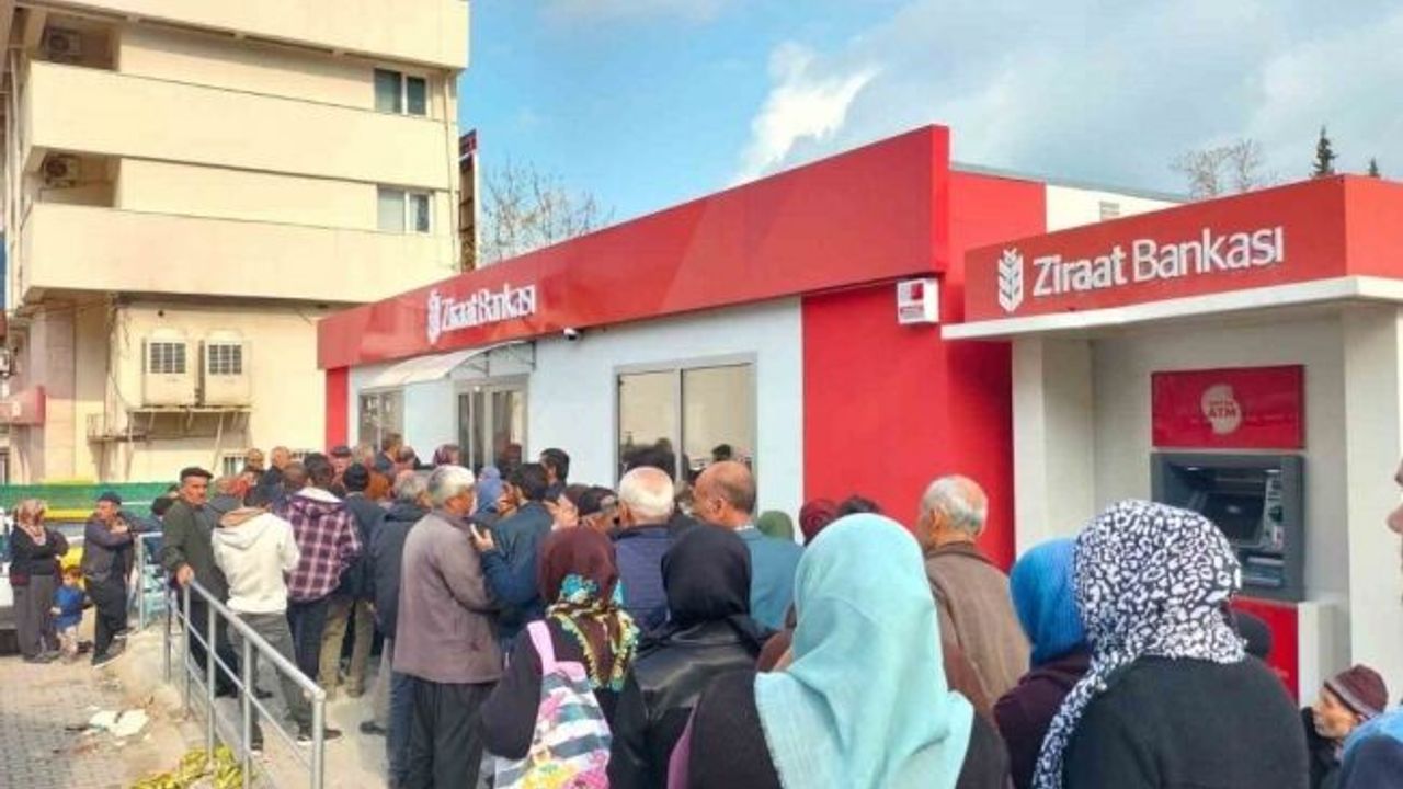 Kahramanmaraş merkezli depremlerde konutları hasar gören depremzedelere yönelik verilen 10 bin lira tutarındaki hane başı destek ödemelerinin başladığı günden itibaren banka önlerinde uzun kuyruklar oluşuyor.