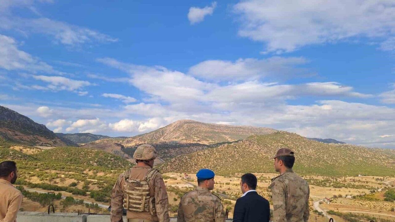 Mehmetçiğe moral ziyareti gerçekleştiren Kaymakam Mustafa Atış, askeri üs komutanından bölge hakkında bilgi aldı.