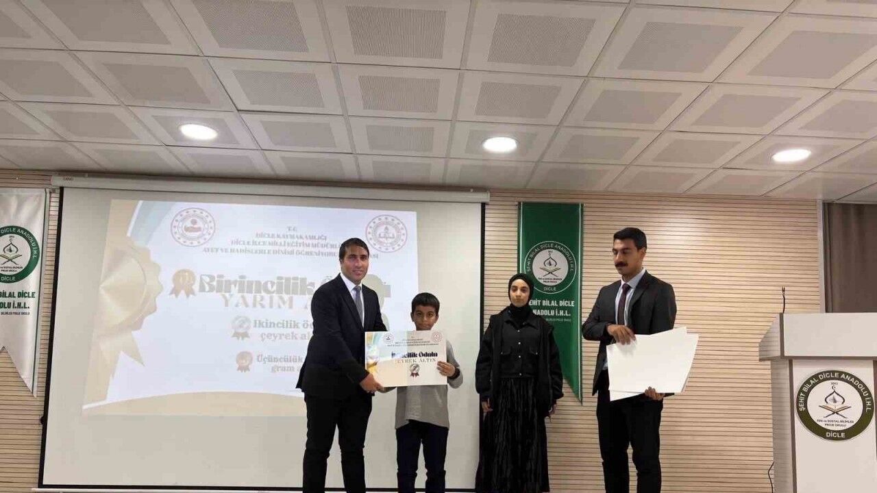 Okulda, Dicle Kaymakamlığının destekleriyle ortaokul ve lise kategorilerindeki öğrenciler arasında düzenlenen "Ayet ve Hadislerle Dinimi Öğreniyorum" yarışmasının ödül töreni yapıldı. Yarışmada dereceye girenlere ödüllerini Dicle Kaymakamı Kadir Yurdagül, Dicle İlçe Milli Eğitim Müdürü Mustafa Sabır verdi.