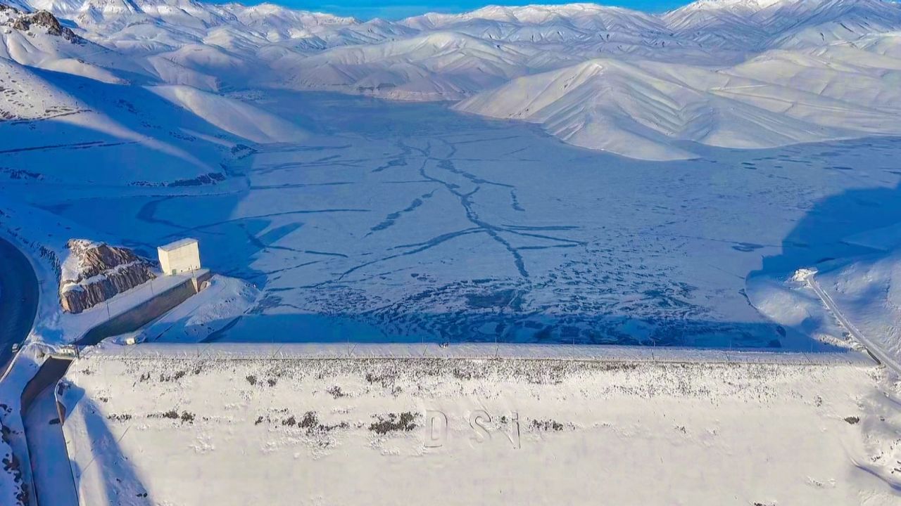 Hakkari'nin Yüksekova ilçesinde hava sıcaklığının sıfırın altına düşmesiyle Dilimli Barajı'nın yüzeyi kısmen buzla kaplandı.