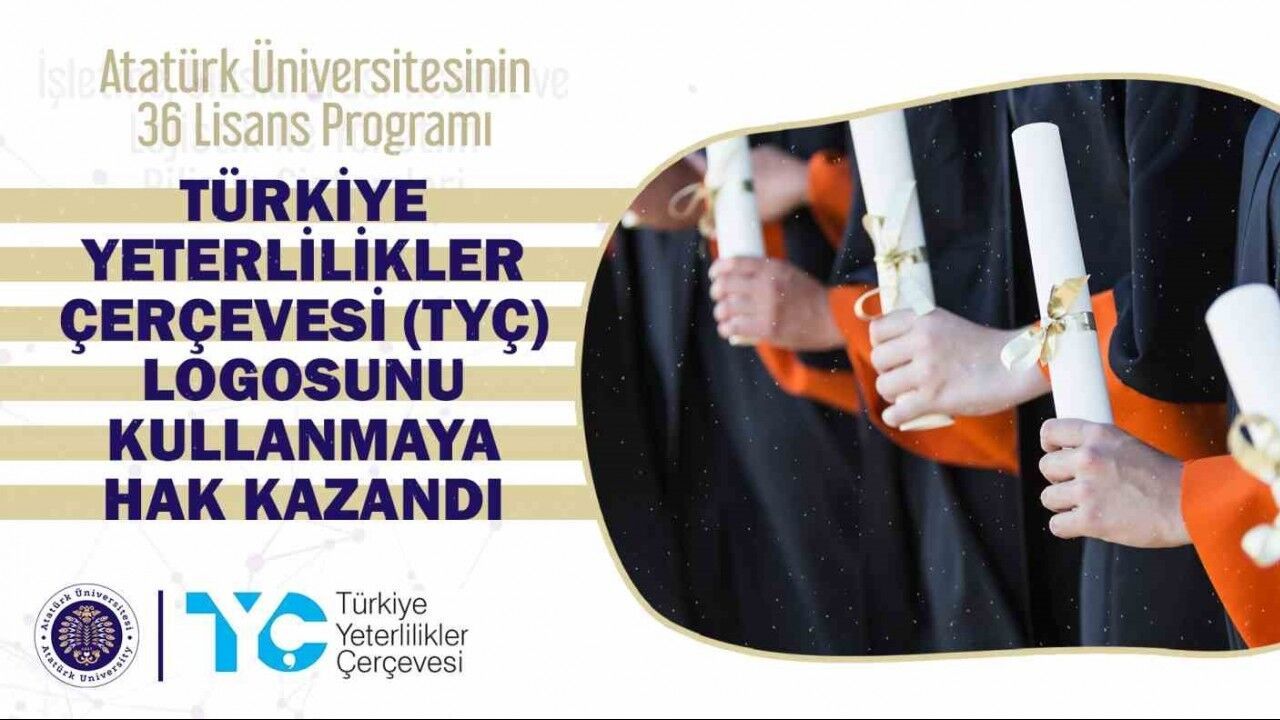 Önceki yıllarda, Türkiye Yeterlilikler Çerçevesi (TYÇ) logosunu diplomalarında kullanmaya hak kazanan Mühendislik Fakültesi Makine, Kimya ve İnşaat Mühendisliği programlarının ardından, önemli bir atılım yaparak 36 lisans programında daha TYÇ logosu kullanma hakkını elde eden Atatürk Üniversitesinde, programların yeterlilikleri TYÇ veri tabanına yerleştirildi.