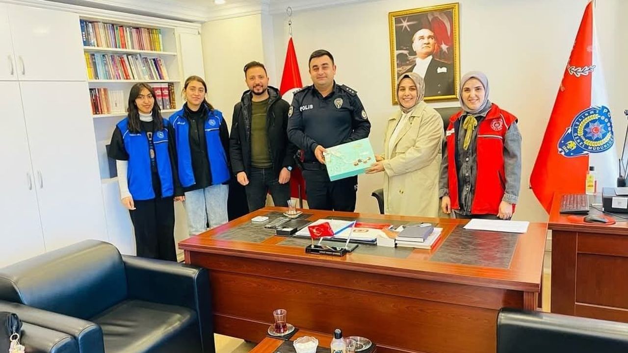 Ağrı Diyadin Gençlik Merkezi, Türk Polis Teşkilatı’nın 180. kuruluş yıl dönümü dolayısıyla bir ziyaret gerçekleştirdi. Bu etkinlik kapsamında, gençlik merkezi yetkilileri ve gönüllü gençler, Diyadin İlçe Emniyet Amiri Başkomiser Oğuz Kaan Çambeli’yi makamında ziyaret etti. Ziyaret sırasında, vatan aşkıyla görev yapan emniyet mensuplarına duyulan minnet ve şükran ifade edildi; görevleri sırasında şehit olan polisler rahmetle, gaziler ise derin bir minnetle anıldı.
