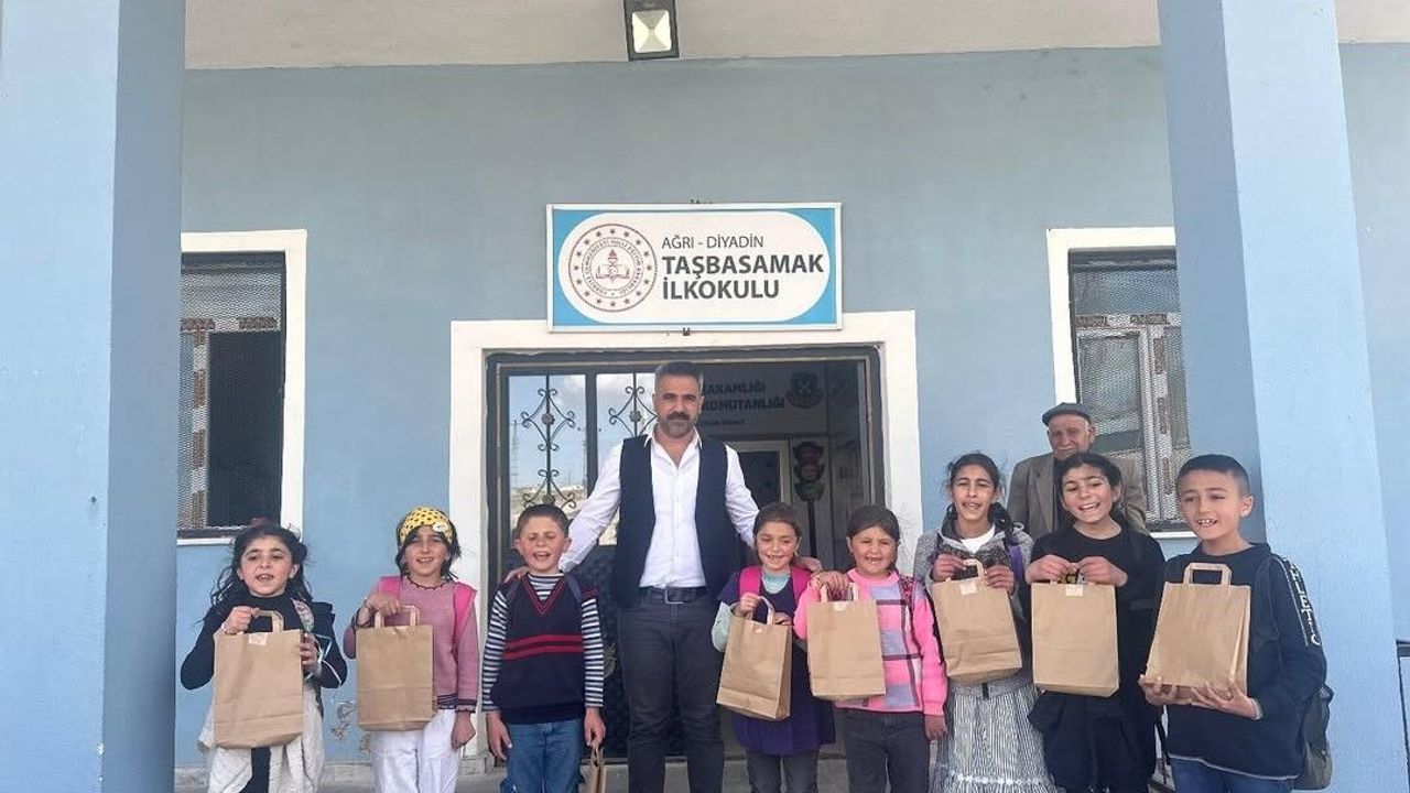 "Okuyan Şehir"Ağrı"projesi kapsamında, Diyadin İlçesi’ndeki Taşbasamak İlkokulu Müdürü Ergün Akdağ, Mart ayında en çok kitap okuyan öğrencileri ödüllendirerek onları sevindirdi.