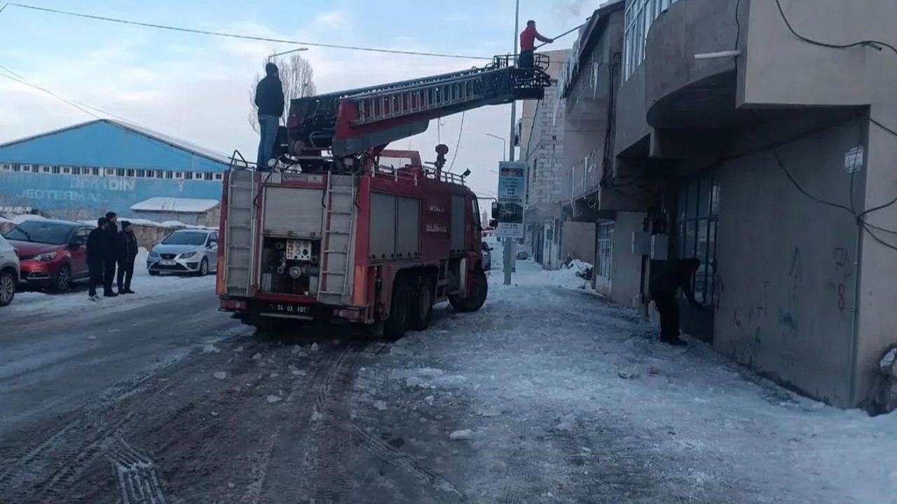 Yüksek binaların çatı ve saçaklarında oluşan buz kütleleri, itfaiye araçları ve ekipmanlarıyla kontrollü şekilde temizlendi. Çalışmalar sırasında yayaların ve işyeri sahiplerinin zarar görmemesi için gerekli güvenlik önlemleri alınırken, riskli alanlar kısa süreli olarak trafiğe kapatıldı.