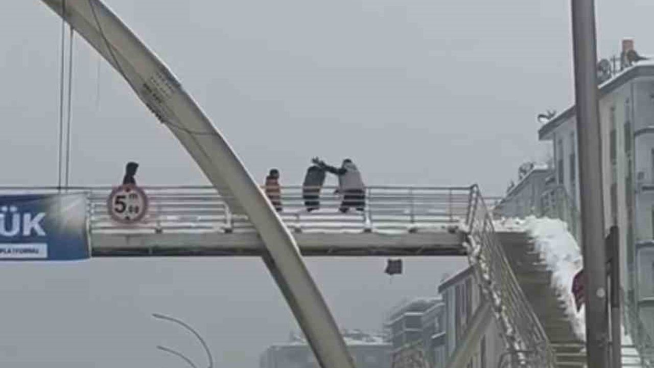 Diyarbakır'da bir şahsın, üst geçitte çocukları öldüresiye dövdüğü anlar cep telefonu kamerasına yansıdı.