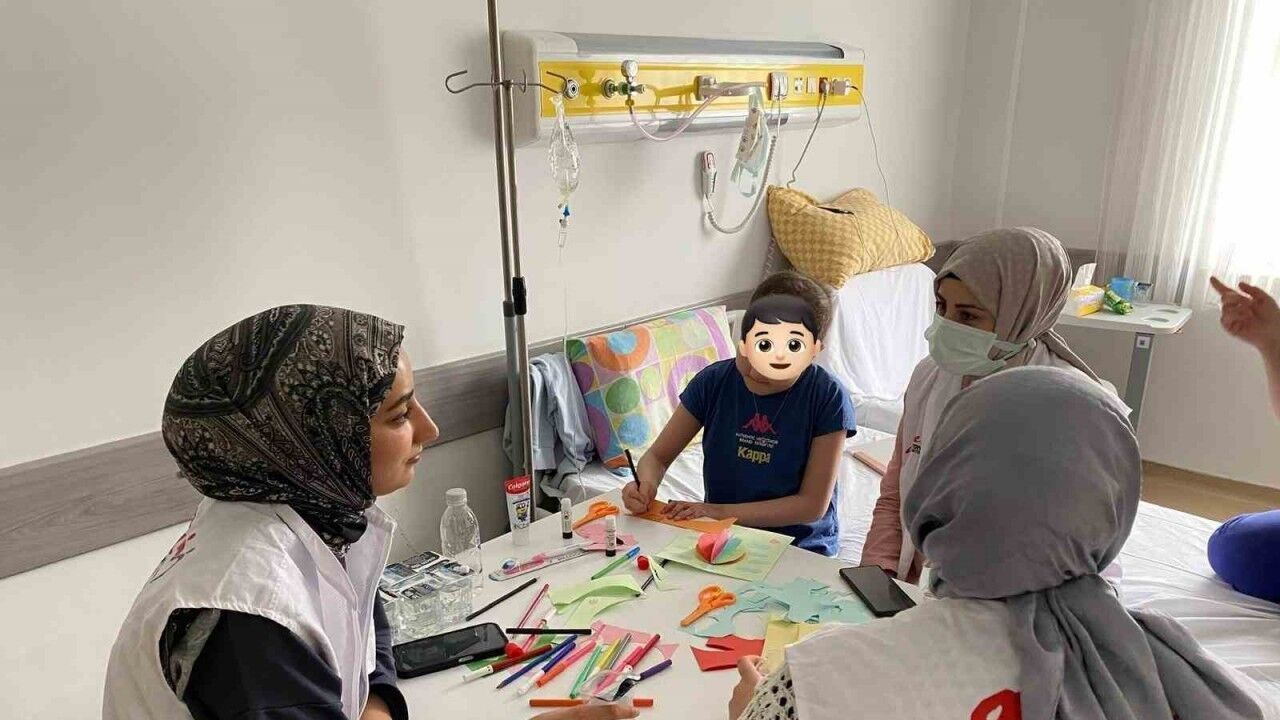 Genç gönüllüler, çocukların odalarına tek tek girerek onlarla yakından ilgilendi. El işi çalışmaları ve boyama etkinlikleri yapıldı, çocukların hayalleri dinlendi. Ardından balonlar, boyama kitapları, diş fırçaları, kalemler ve çeşitli hediyeler dağıtılarak çocukların bayramı renklendirildi. Şarkılar söylendi, sohbetler edildi, birlikte oyunlar oynandı.