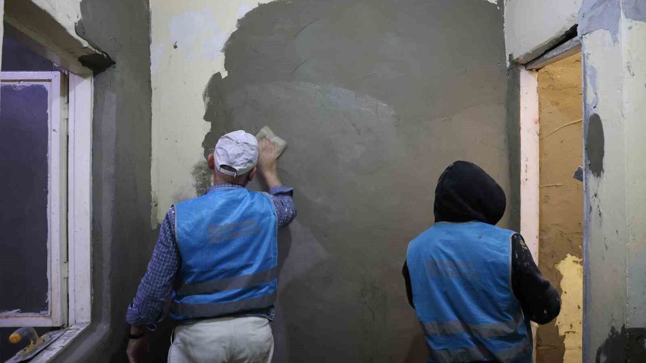 Diyarbakır'da ihtiyaç sahibi bir kadının evinde, Cumhuriyet Başsavcılığı ve Sur İlçe Kaymakamlığı arasında denetimli serbestlik hizmetlerine ilişkin imza altına alınan protokol kapsamında, denetimli serbestlik hükümlülerince onarıma başlandı.