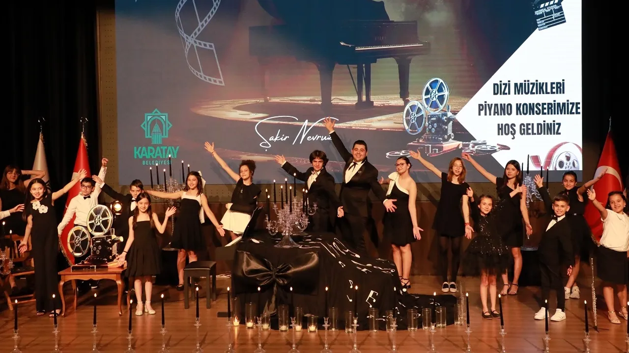 Konya Karatay Belediyesi’nin ev sahipliğinde, Ali Ulvi Kurucu Gençlik Merkezi’nde gerçekleştirilen “Dizi Müzikleri Piyano Konseri”, sanatseverlere unutulmaz bir akşam yaşattı.KONYA (İGFA) - Sanat Yönetmeni Şakir Nevruz ve öğrencilerinin sahne aldığı konser, izleyicilere nostaljik anlar sundu. Yoğun ilgi gören konserde, geçmişten günümüze iz bırakan dizilerin müzikleri piyano eşliğinde yeniden hayat bul