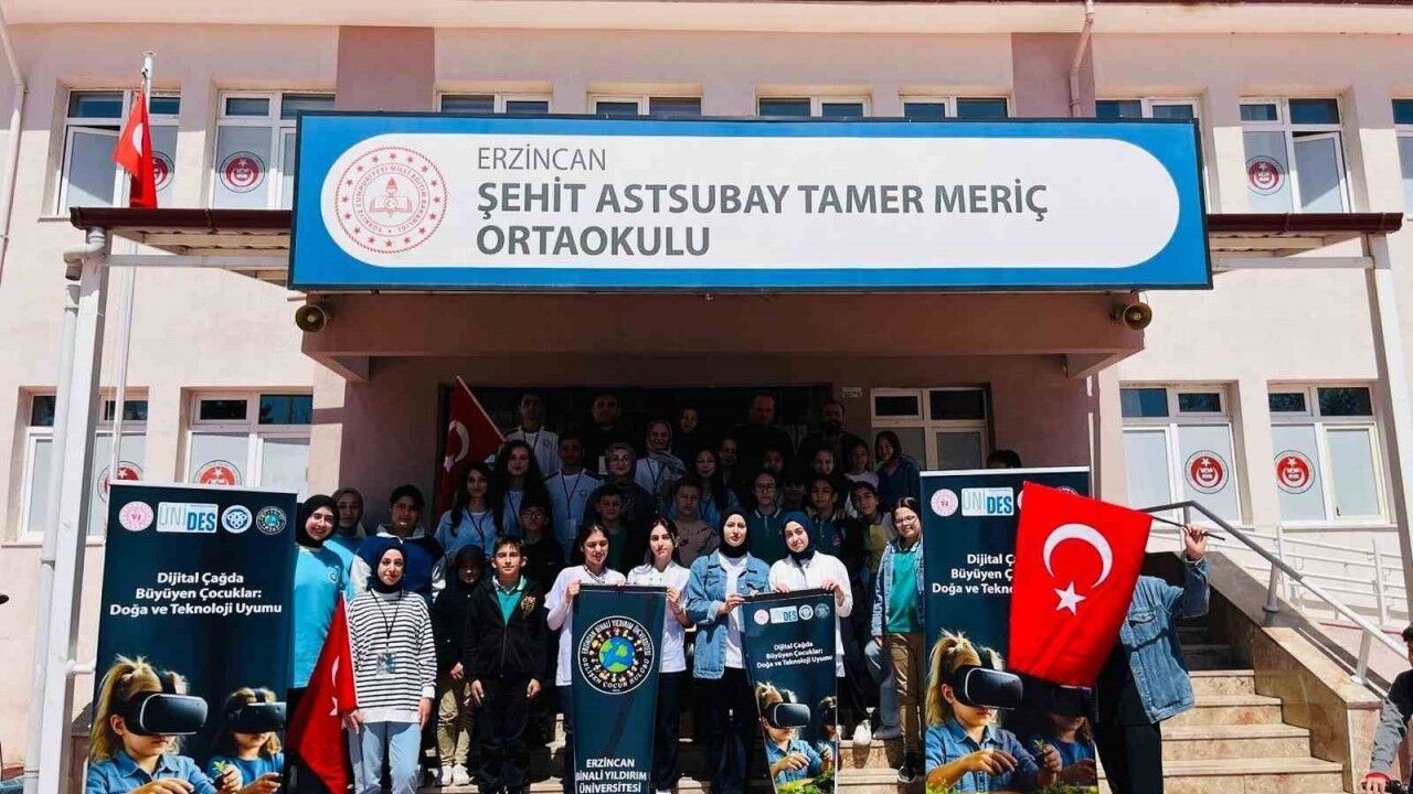 Üniversite Öğrenci Toplulukları İşbirliği ve Destek Programı (ÜNİDES) kapsamındaki Dijital Çağda Büyüyen Çocuklar: Doğa ve Teknoloji Uyumu başlıklı projenin ilk hafta etkinliği olan "Doğa ve Kodlama", Erzincan Şehit Astsubay Tamer Meriç Ortaokulunda gerçekleştirildi.