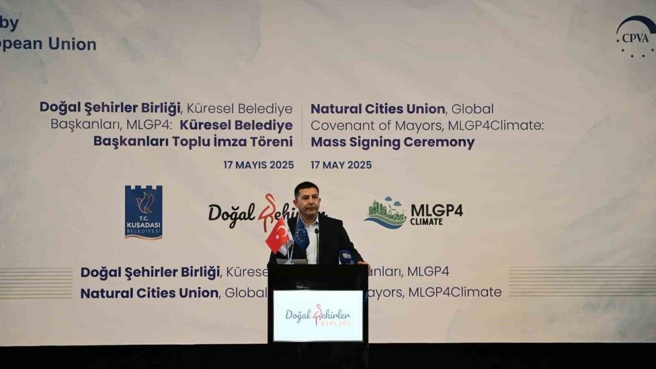 Doğal Şehirler Birliği, iklim değişikliğiyle mücadele çalışmalarında Avrupa standartlarında bir adım attı. Bu kapsamda Kuşadası Belediye Başkanı Ömer Günel’in başkanı olduğu birliğe üye 16 belediyenin başkanı, Kuşadası’nda bir araya gelerek ‘Belediye Başkanları Küresel İklim ve Enerji Sözleşmesi’ni’ imzaladı. İmza törenine Kuşadası Kaymakamı İbrahim Keklik, CHP Aydın Milletvekili Evrim Karakoz, Litvanya’nın Ankara Büyükelçisi Ricardas Degutis, GCoM Direktörü Daiva Matoniene, Habitat Derneği İcra Kurulu Başkanı Bora Caldu, Enerji ve Tabi Kaynaklar Bakanlığı, İklim Değişikliği Bakanlığı ve Dışişleri Bakanlığı Avrupa Birliği Başkanlığı bürokratları katıldı.