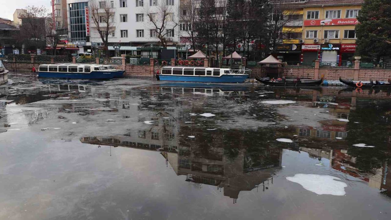 Eskişehir'de geçtiğimiz günlerde dondurucu soğukların etkisiyle neredeyse tamamen buz tutan Porsuk Çayı, hava sıcaklıklarının yükselmesiyle birlikte çözülmeye başladı.