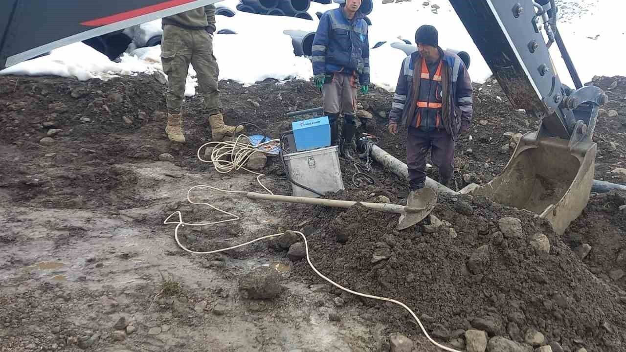 Hakkari Belediyesi Su ve Kanalizasyon Müdürlüğü ekipleri, 2 bin rakımlı Kırmızı Tepe’de dondurucu havaya rağmen su arızasına müdahale etti.