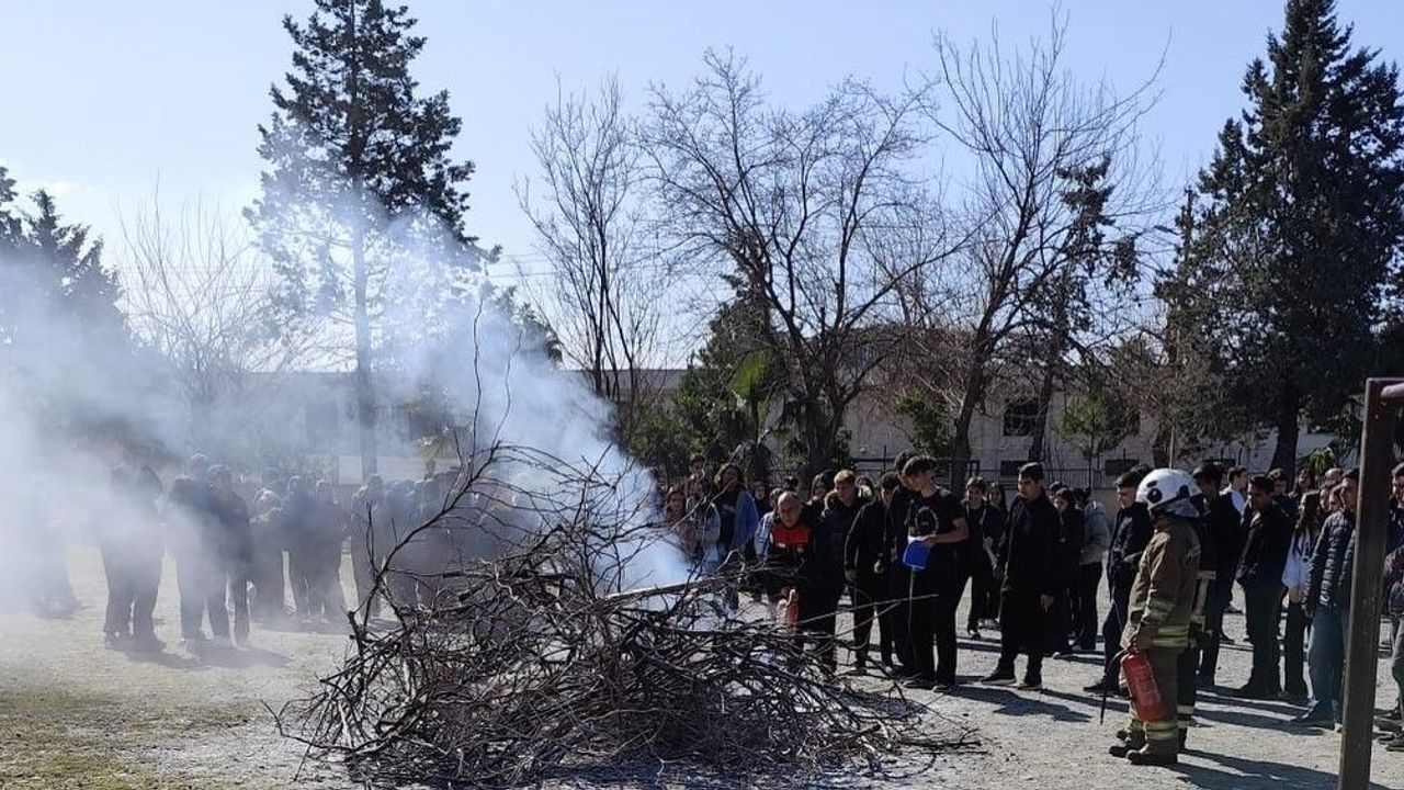 Hatay'da lise öğrencilerine temel yangın eğitimi verildi ve tatbikat düzenlendi.