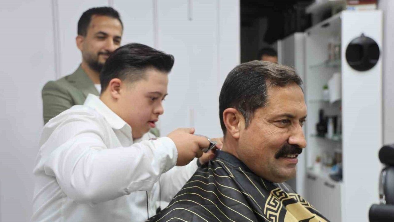 Hatay’da down sendromlu kuaför Şükrü Dağlı’nın 3 Aralık Dünya Engelliler Günü’nde ilk müşterisi Vali Mustafa Masatlı oldu. Şükrü ve Vali Masatlı arasında geçen tıraş ücreti diyaloğu ise gülümsetti.