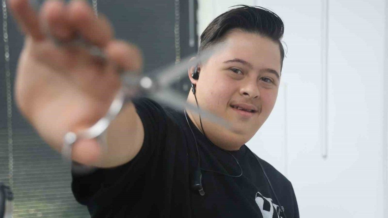 Antakya ilçesi Ekinci Mahallesi’nde yaşayan 16 yaşındaki Down sendromlu Şükrü Dağlı, 2025 yılı Nisan ayından itibaren kuaför Cuma Karaahmetli’nin iş yerinde çıraklık yapmaya başladı. Zaman geçirmek ve yeni arkadaşlıklar edinmek için kuaför salonunda vakit geçiren Dağlı, kısa sürede kendini geliştirerek çırak olma başarısı elde etti. Yeteneği ve müşterilerin kendisine olan sevgisiyle Dağlı, şahsına ait berber koltuğunda vatandaşlara hizmet ediyor. Profesyonel berber olma hayaliyle mesai yapan Dağlı, müşteriler tarafından da kuaför salonunun en sevilen ismi olmuş durumda. Öğrenmeye açık ve girişken olan Şükrü’nün berber mesleğinde kendisini geliştireceğini ifade eden esnaf Karaahmetli, zamanla profesyonel saç kesme yolunda ilerlediğini söyledi.