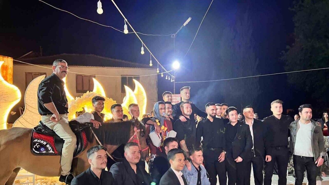 Çanakkale’nin Bayramiç ilçesi Pınarbaşı köyünde Pınar Acar(20) ve Harun Acar(22) çifti düzenlenen düğün töreniyle dünya evine girdi. Hafta sonu boyunca süren gençlerin düğününde, arkadaşlarının çeşitli şakalarıyla renkli sahneler yaşandı. Düğün törenine katılanlar gönüllerince eğlenirken sıra takı merasimine geldiğinde hayvancılık yaparak geçimini sağlayan damada takılan takılar da farklı oldu. Çiftin arkadaşlarından Hakkı Eren, geline takı töreninde buzağı hediye etti. Damadın arkadaşı ve sağdıcı Utku Ercen ve amcası Halil Acar ise damada takı merasimi sırasında takı olarak birlikte aldıkları atı hediye etti.