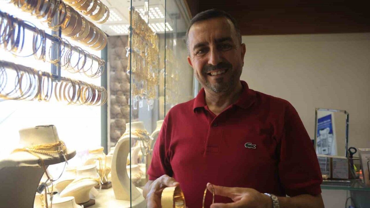 Hatay’da sarraflık yapan Ahmet Güney, düğün yapan çiftlere sahte altın ve ayarı düşük takılara karşı mağdur olmamaları için takılan takılara küçük yapıştırıcılarla isim ve numara yazmaları tavsiyesinde bulundu.